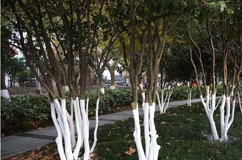 5.防止凍害。由于冬、春兩季晝夜溫差較大,通過涂白色石灰粉能反射陽光和紫外線對樹干的照射,使樹干基部熱量積累較小,減小晝夜溫差,避免白天樹液流動(dòng),夜晚溫度驟降造成的凍害。
